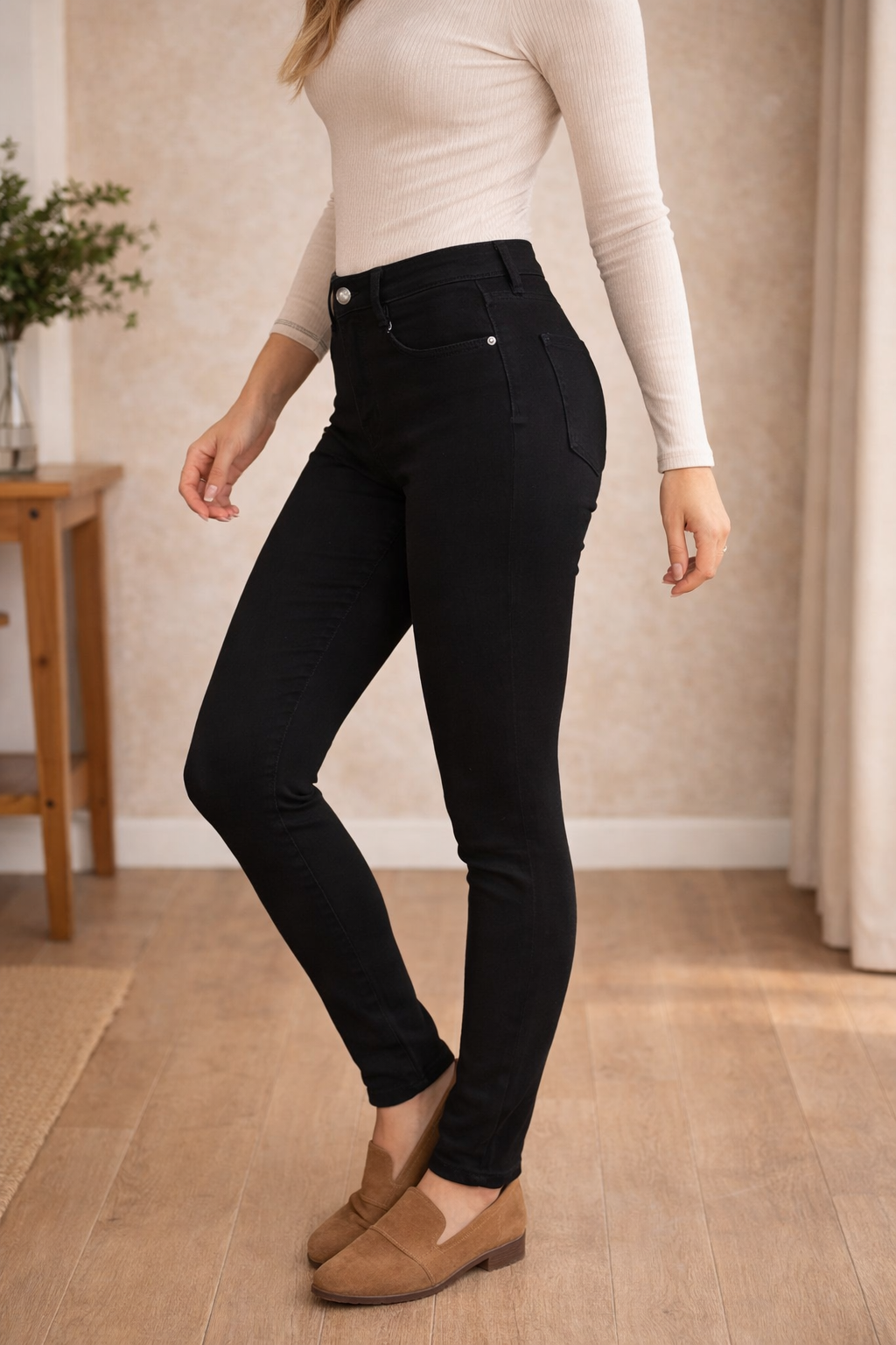Women's High Waist Skinny Jeans are designed to create a flattering silhouette. These jeans have a figure-hugging fit and are made from stretch denim for optimal comfort. They are perfect for both everyday wear and party wear, making them a versatile piece in your wardrobe.