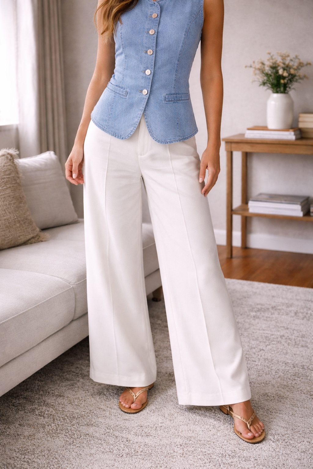 This women's vest sleeveless design has a tailored fit and front button fastening. The waist-length design provides a timeless style that is perfect for a variety of occasions. The vest is ideal for combining with a simple t-shirt and jeans for a casual look, or over a dress for a more dressed-up style.